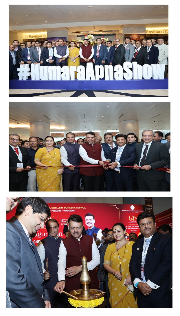 Grand Inauguration of 5th Edition of GJS - India Gem and Jewellery Show by the Chief Guest - Shri Mangal Prabhat Lodha, Honourable Minister of Skills, Employment, Entrepreneurship, and Innovation (Govt. Of Maharashtra) along with the Guests of Honour Mr Rajesh Kalyanaraman, Executive Director - Kalyan Jewellers, and Mr Sunil Nayak, CEO - Reliance Jewels.